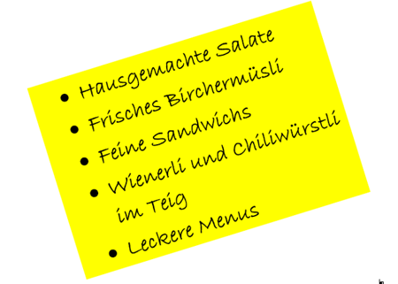 Entdecken Sie unsere Take-Away Angebot und geniessen Sie täglich frisch zubereitete Gerichte aus regionalen Zutaten. Ob leckere Mittagsmenü, schnelle Snacks für unterwegs oder erfrischende